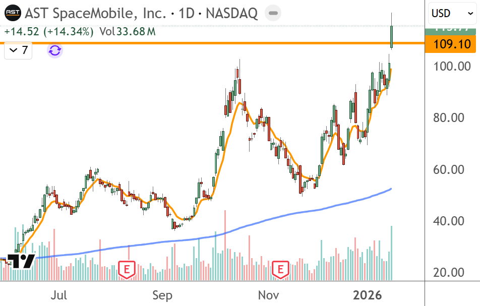 - AST SpaceMobile Inc ($ASTS) AST SpaceMobile shares are trading higher after the company was awarded a prime contract position on the US Missile Defense Agency's SHIELD program.